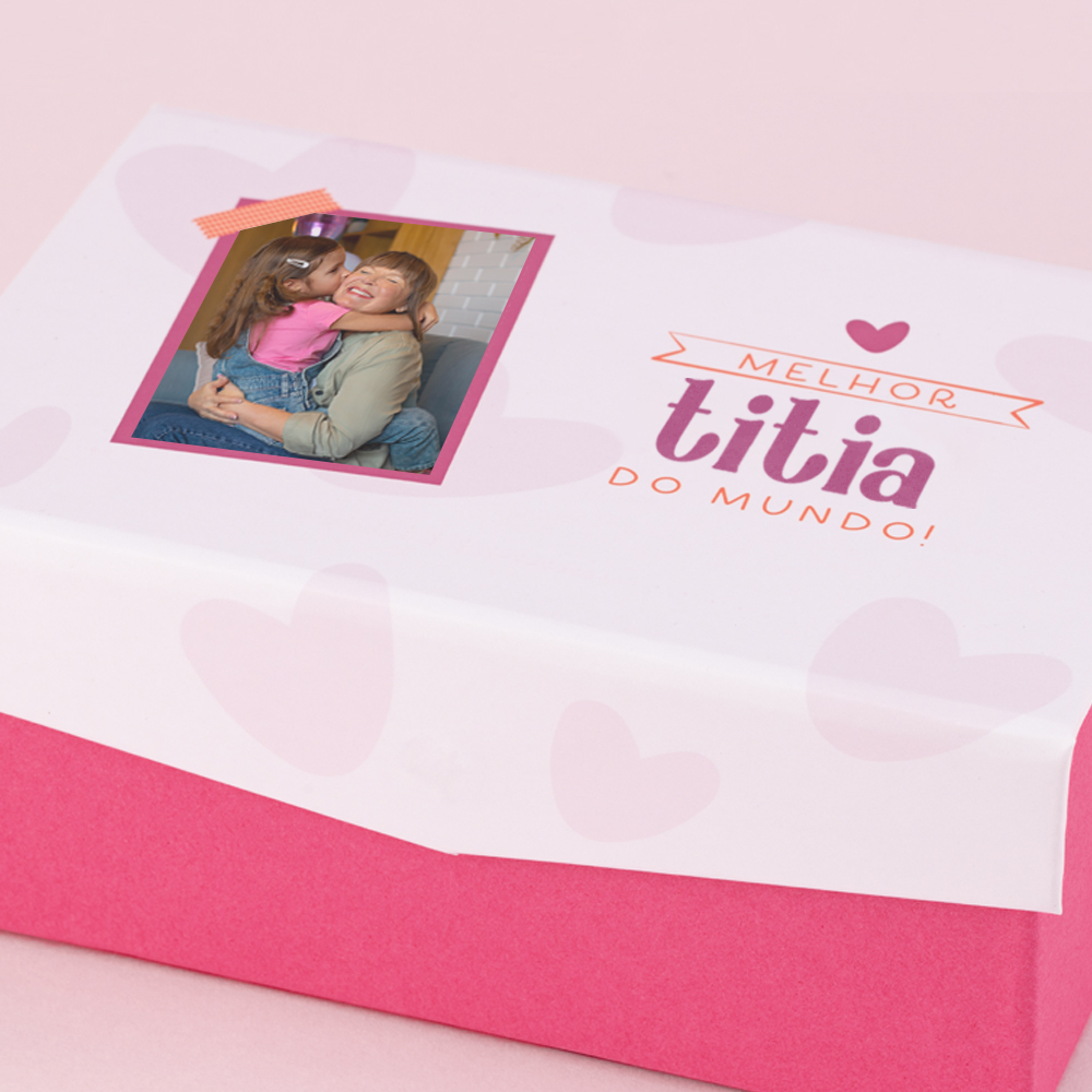 Você pode personalizar a capa da caixa com nome e fotos se houver, depende de cada modelo. E pode personalizar os cubos com fotos.