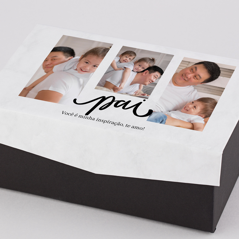 Você pode personalizar a capa da caixa com nome e fotos se houver, depende de cada modelo. E pode personalizar os cubos com fotos.