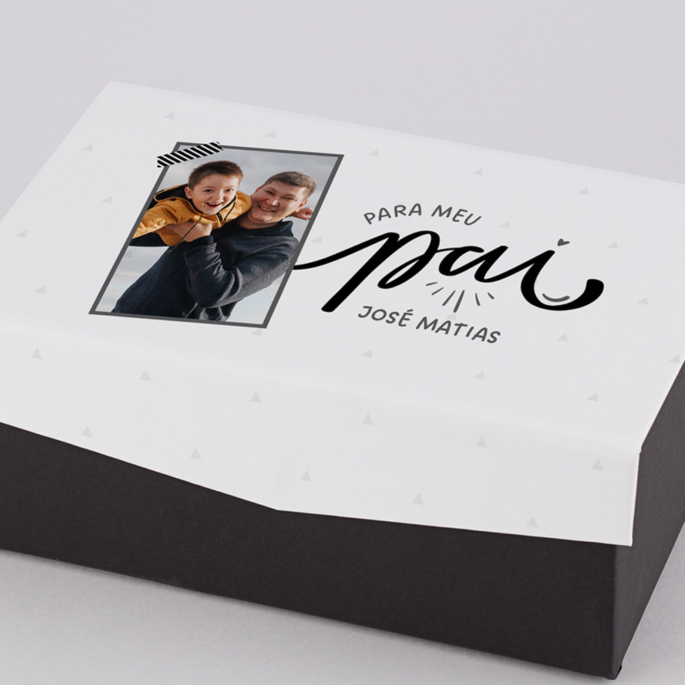 Você pode personalizar a capa da caixa com nome e fotos se houver, depende de cada modelo. E pode personalizar os cubos com fotos.