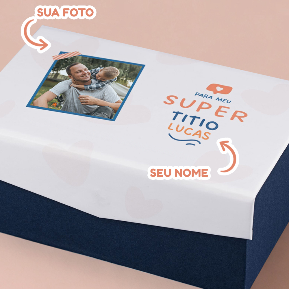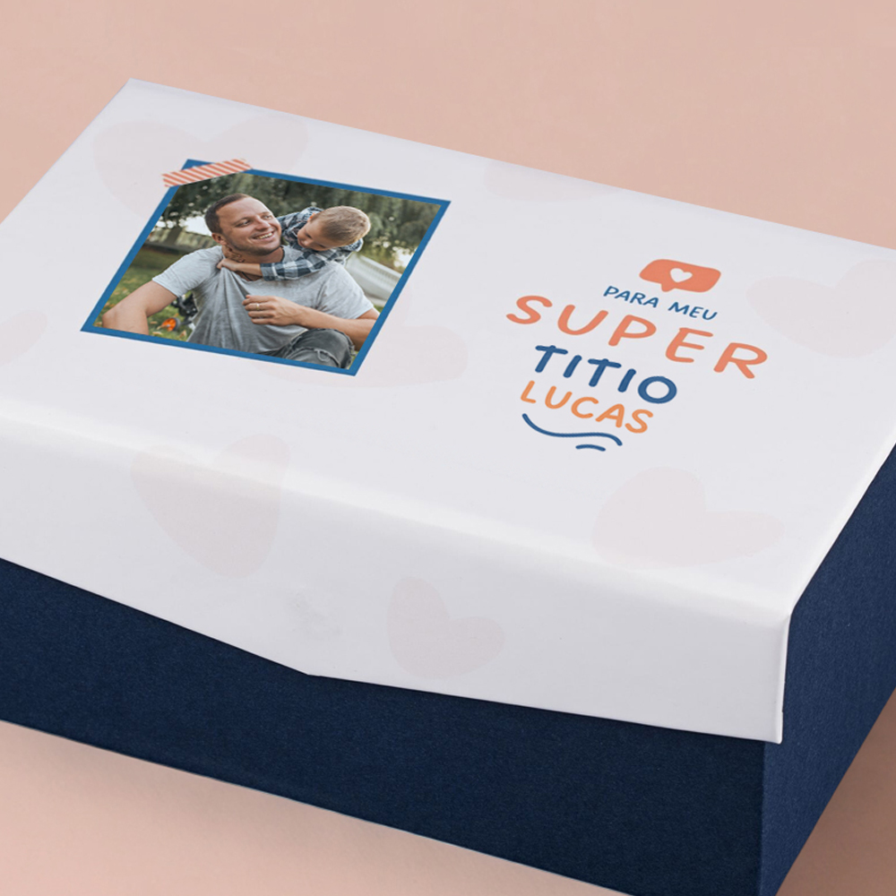 Você pode personalizar a capa da caixa com nome e fotos se houver, depende de cada modelo. E pode personalizar os cubos com fotos.